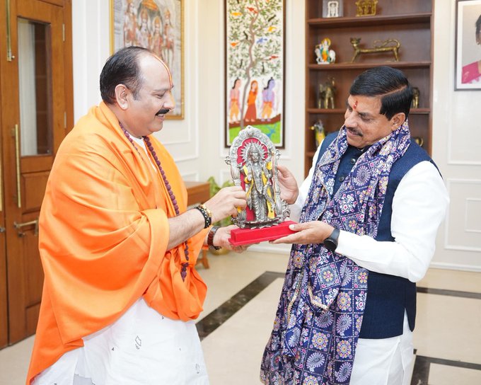 आज भोपाल निवास में प्रसिद्ध कथावाचक पंडित श्री प्रदीप मिश्रा जी से सौजन्य भेंट हुई।-Dr Mohan Yadav