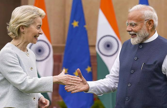 भारत और यूरोपीय संघ ने आज मुक्त व्यापार समझौते को अंतिम रूप दिया। नई दिल्ली में प्रधानमंत्री नरेन्द्र मोदी, यूरोपीय परिषद के अध्यक्ष एंतोनियो कोस्टा और यूरोपीय आयोग की अध्यक्ष उर्सुला फॉन डेर लायन के बीच प्रतिनिधिमंडल स्तर की वार्ता हुई। भारत और यूरोपीय संघ ने आज व्यापार, सुरक्षा, रक्षा साझेदारी, आवाजाही, आपदा जोखिम प्रबंधन और हरित हाइड्रोजन सहित सात समझौतों पर हस्ताक्षर किए। इस अवसर पर प्रधानमंत्री मोदी ने कहा कि भारत और यूरोपीय संघ के संबंध मजबूत हुए हैं और नए मुकाम पर पहुंचे हैं। प्रधानमंत्री ने कहा कि यह सिर्फ एक व्यापार समझौता नहीं, बल्कि साझा समृद्धि का एक नया खाका है।