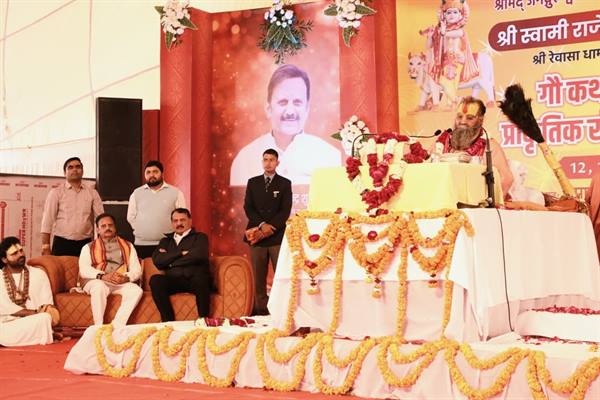 जगदगुरू श्री राजेंद्रदास जी महाराज ने कहा कि वर्तमान समय में समाज की दुर्दशा का मूल कारण गौवंश की उपेक्षा है। उन्होंने कहा कि भौतिक संपत्ति असुरों के पास भी थी, किंतु वह आसुरी संपत्ति थी, दैवीय संपत्ति नहीं। आसुरी संपत्ति मनुष्य को संसार के मोहजाल में फँसाती है, जबकि दैवीय संपत्ति उसे मोक्ष के मार्ग पर अग्रसर करती है। महाराज जी ने गौ सेवा को सच्ची समृद्धि का आधार बताते हुए कहा कि गौ माता की सेवा से बुद्धि निर्मल होती है, जीवन में सुख-शांति आती है और व्यक्ति के समस्त अशुभ कर्म सहज ही क्षीण हो जाते हैं। उन्होंने यह भी कहा कि धरती का कल्याण गौ संरक्षण से ही संभव है तथा गौ आधारित प्राकृतिक खेती ही आने वाले समय का सतत और सात्विक समाधान है। गौमाता धरती का चलता फिरता कल्पवृक्ष है जो सबकी कामनाओं की पूर्ति करती हैं।